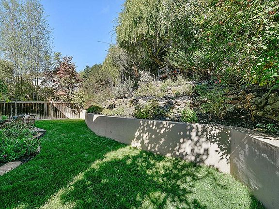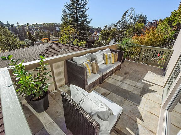 This sunny contemporary, built just 17 years ago, has all the space you could ever want and room for the au pair or in-laws, too. Five bedrooms in all, 3.5 baths plus an office/studio/fitness room with cozy, radiant mat heat in the floor. On the main level, you'll find a big, well-appointed chef's kitchen that flows easily to a dinette and step-down family room with fireplace and large deck. Also on this floor, a gracious living room and formal dining room for those times when you want to take entertaining up a notch. The dining room also features French doors that open wide to an inviting patio. High ceilings and newly refinished hardwood floors add a special richness to all these rooms. Out back, a large play yard and beautifully landscaped terrace beckon you to kick your shoes off and sink your feet into the soft, lush grass. There are even three “treehouses” neatly camouflaged in the terrace for adventurous little ones. And be sure not to miss the delicious apples and lemons, which are in season right now. Upstairs, a huge master suite awaits with its own private deck and magnificent view of the Oakland hills, Mt. Tamalpais and a sliver of the Bay. There’s also an oversized, custom walk-in closet and a master bath that features a dual head shower and jetted tub bathed in sunlight from the skylight above. On this floor, three more good-sized bedrooms, all with hardwood floors, big closets and happy green vistas. Go downstairs (or use the exterior entrance) and you'll be delighted by an oversized fifth bedroom with its own full bath, perfectly suited for the au pair or in-laws. This is also where the multi-use bonus room can be found, entering via two tall French doors. Interior access from the extra-large 2-car garage is here as well. Look in the garage and you’ll see some of the equipment for this home’s money-saving solar electrical system. While the home itself fulfills most people's wish list, there's much more to like. First, it sits on a quiet, level street, low in the Montclair hills, so there are no winding roads to navigate. And when it's time to leave, Montclair Village is right down the road. And you're just one minute to the freeway and only a few more to the East Bay's most popular shopping and dining venues – Rockridge, Piedmont Avenue, Elmwood, Temescal and Oakland’s resurgent downtown. BART is virtually around the corner – as is San Francisco, for that matter. And you'll be happy to know that this home lies within the attendance boundaries of the award-winning and highly coveted Thornhill Elementary school (Call the Oakland School District for details). What an opportunity! Plan now to see all this home has to offer.