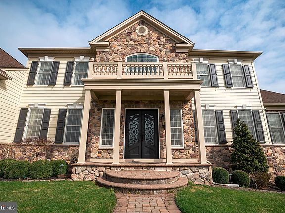 Indulge in the epitome of opulence within this sprawling 6,000 sq. ft. residence in the esteemed Estates at Hilltown. Majestically situated against preserved land, this four-bedroom haven boasts five full bathrooms, two half baths and 3 car garage, greeting you with a captivating butterfly staircase in the foyer. The main level unfolds with a formal living and dining room adorned in hardwood floors and custom crown molding. A vaulted-ceiling conservatory beckons, featuring a wet bar with granite countertops and a seamless transition to a vast composite deck overlooking the expansive backyard. The chef's kitchen is a culinary masterpiece with double wall ovens, a pantry, and granite countertops framing awe-inspiring views. Experience sheer magnificence in the great room- a masterpiece of design. Towering two-story ceilings, rich hardwood floors, coffered ceiling, a gas fireplace with floor to ceiling stone, and a second staircase redefine luxury living. An office, 2 powder rooms, and mudroom complete this floor. Ascend to the second level, where the primary suite awaits with vaulted ceilings, a sitting room, and a lavish en suite featuring heated floors, Jacuzzi tubs, and an oversized walk-in shower. Two bedrooms boast Juliet balconies with attached bathrooms, and a fourth bedroom offers its own en suite. Technological marvels abound, from the ozinator pool and new Bose system to the updated lifestyle system and outdoor speakers with lifetime warranty. The entire house is fortified with Ring flood and spot cameras, ensuring security. The residence, adorned with Timberlane shutters, presents a full irrigation system and a basement ripe for customization. This home is a sanctuary for those seeking a luxurious retreat with unparalleled amenities.