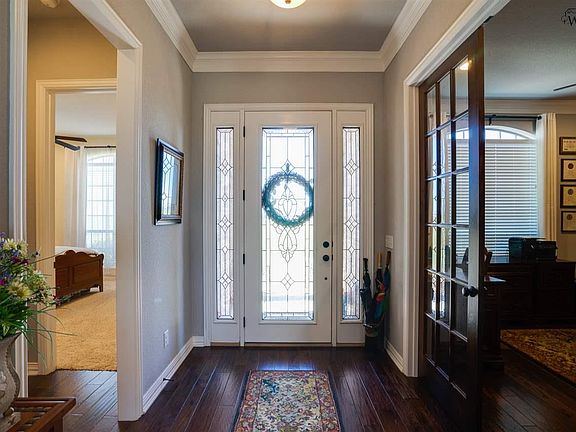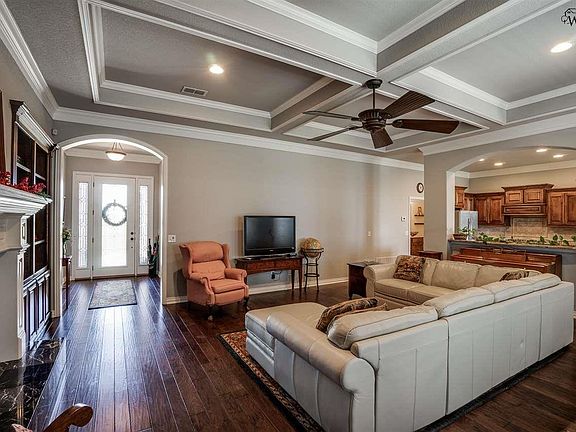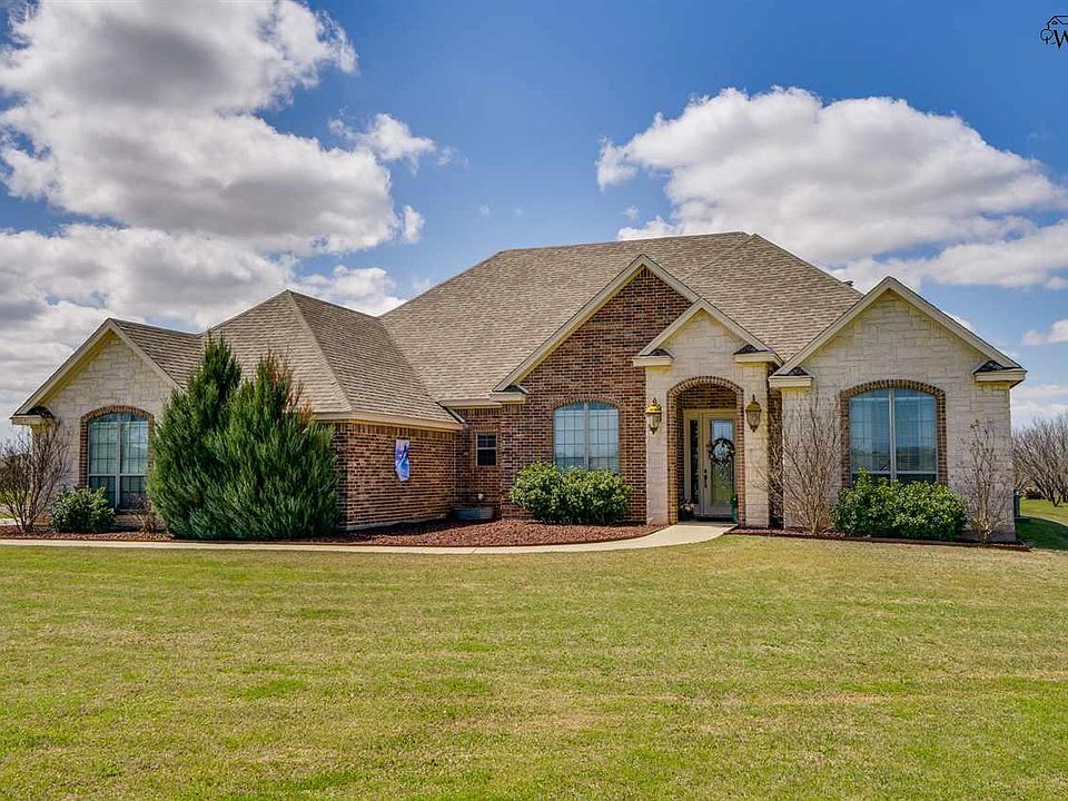 Pristine home situated on over 9 acres just minutes from Wichita Falls. Custom built for present owner by Wachsman in 2013. Features include hardwood floors, custom moldings and tall ceilings. Living room with fireplace. Wonderful kitchen with stone counters and stainless steel appliances. Study, game room and isolated master suite. All bedrooms feature ensuite bathrooms. Oversized attached garage. 1,500sf shop features two overhead doors, electricity and plumbing. Gated entry. Views of Lake Wichita.
