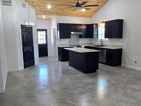 Located at the corner of Main Street HWY 51 and W. Bradshaw, you're less than 2 miles from Downtown Springtown and only about 15 minutes to Weatherford. With no known restrictions and no HOA, this property offers incredible flexibility bring your boat, RV, chickens, or even horses. Guest houses are allowed! Inside, you'll find an open-concept layout with vaulted beadboard ceilings, a custom electric fireplace, and hand-built barn doors. The kitchen is designed to impress, featuring, Custom cabinetry, Stylish electric range, Granite countertops, Large center island with built-in cabinets & microwave and plenty of seating area. Custom lighting throughout. Additional highlights include: Full-size laundry mud room with storage cabinets and a place to hang your coats. Spray foam insulation to help keep the home climate controlled and help with energy costs.