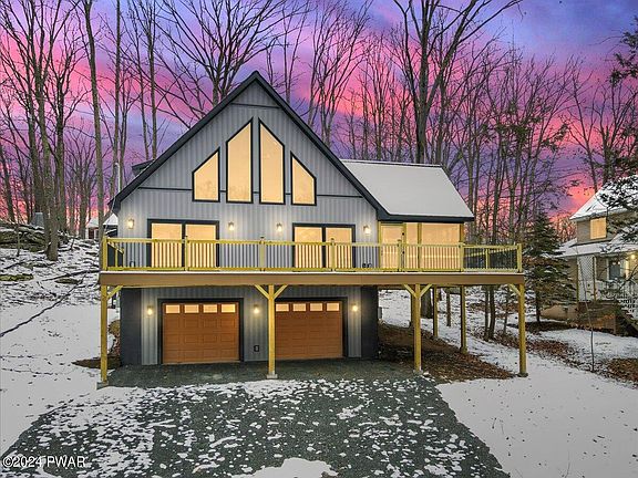 A slice of paradise at Lake Wallenpaupack! This stunning brand new chalet combines the allure of modern luxury with the serenity of nature. Imagine creating culinary masterpieces in the gourmet kitchen, complete with quartz counters, top-of-the-line appliances, & a striking oversized island, bathed in light from chic pendant lighting. The GE Advantix wall oven is convection, microwave AND air fryer!Natural light floods through large Andersen 400 Series (Energy Star) windows, setting cathedral ceilings aglow and highlighting an open, airy living space. Beautiful Pergo flooring though out. Need relaxation? Retreat to the primary suite where a soaking tub, double-sink vanity, & a large, lavish shower await to wash away the day. The walk-in closet is roomy enough to house an extensive wardrobe with ease.Hosting friends & family? They'll find comfort in two additional bedrooms, a loft, and lower level family room, making hospitality a breeze. The home has 3 full baths plus a powder room for comfort & convenience. Step outside and find outdoor living redefined: a TREX wrap-around deck and a spacious screened porch provide the perfect backdrop for any gathering or quiet evening at home.Beyond your door, Wallenpaupack Lake Estates offers an array of amenities to enrich your lifestyle. Dive into indoor/outdoor pools, lounge on lakefront beaches, set sail from the marina, or mingle at the clubhouse. There's a campground, arcade, fitness center, and more. This community is golf-cart friendly making it fun to ride around and visit friends and neighbors. Life here means every day is a resort-like experience with the great outdoors as your playground.This home - a truly unique gem thoughtfully designed and built in a vibrant lake living community - is waiting to be the setting of your new beginning.NOTE: square footage is approximate and does NOT include the 560 s.f. garage. Taxes are on the LAND ONLY; the taxes have not yet been calculated for the home.
