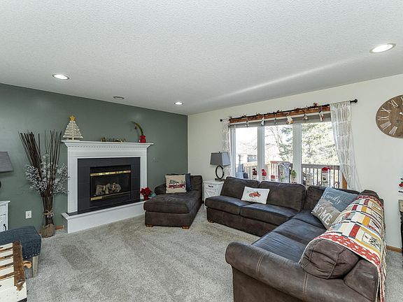This stunning 5-bedroom, 4-bath, 2-story home offers an ideal blend of style, comfort, and functionality. The property features an attached 3-stall garage and a fully fenced yard, perfect for privacy and outdoor activities. Enjoy the charming front porch and a spacious two-tier deck overlooking the fenced back yard with beautifully landscaped gardens and fruit trees. On the main level, you'll find a spacious living room with a cozy gas fireplace, a large kitchen with stainless steel appliances, quartz countertops, a convenient center island, a sizable pantry, and an elegant backsplash. The main level also includes a welcoming foyer with a large walk-in closet, a mudroom off the garage, a half guest bath, and a bright four-season sunroom with a vaulted ceiling and stunning backyard views. The upper level boasts a luxurious primary suite with two walk-in closets and a private three-quarter bath, along with three additional large bedrooms, two of which feature walk-in closets. A full bath with a double vanity and a finished laundry room completes the upper floor. The lower level offers a spacious family room, a fifth bedroom, another full bath, and ample storage, including a large mechanical room with shelving and two additional storage areas. This home is perfect for those seeking both comfort and elegance in a desirable setting.