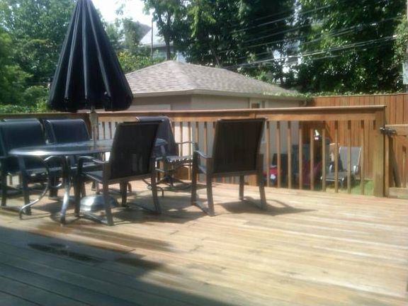 *New kitchen * parquet floors, L/R, D/R *Porcelain tiles in entranceway, Kitchen and powder room *Private Driveway, Garage *Huge back deck * Central Air * Finished basement *Outside- new stucco, new roof