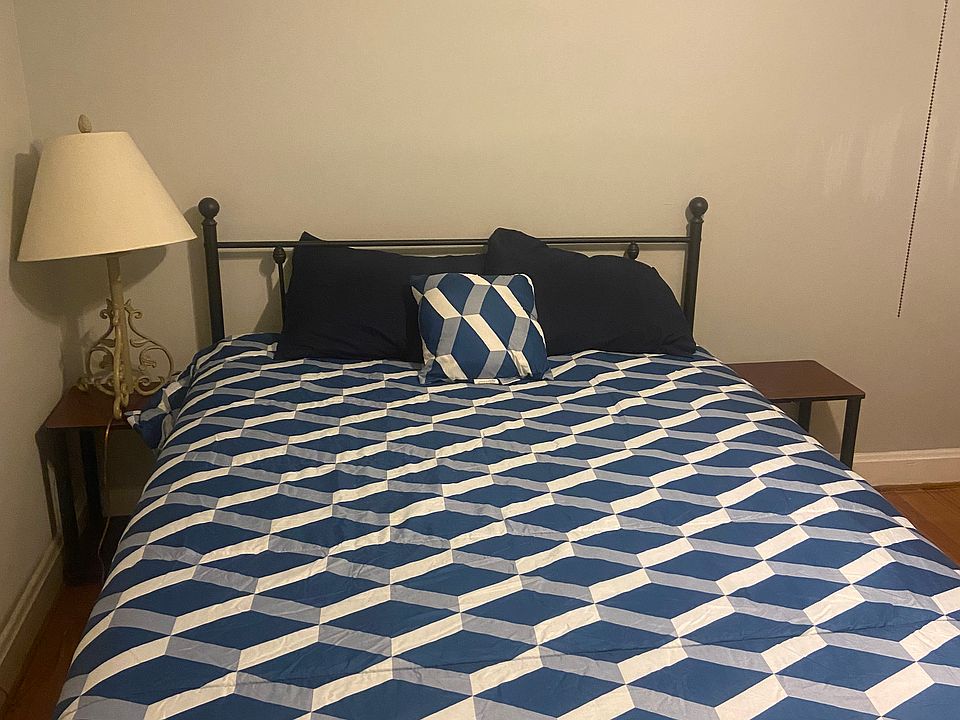 Clean room with bed, nightstand, dresser, and lamp and closet. Shared bathroom with one other roommate. Living Room fully furnished, kitchen fully stocked with pots and pans and cooking utensils. All utilities included in rent cost. Currently there are 2 males renting the other rooms, but the room we are listing is available to a male or female. Application required-no fee. No pets Lease to be 3 months or longer