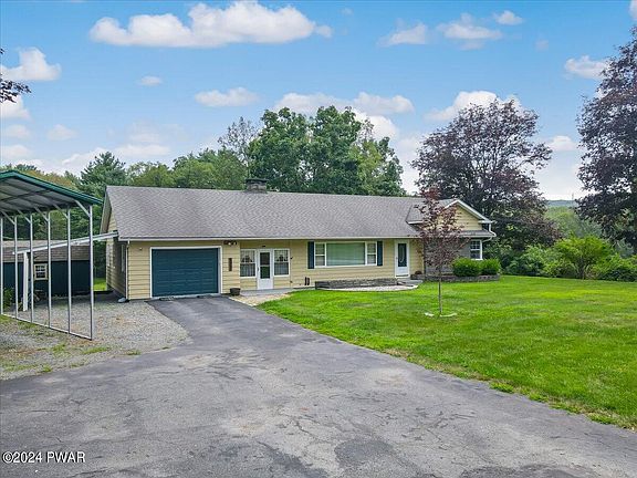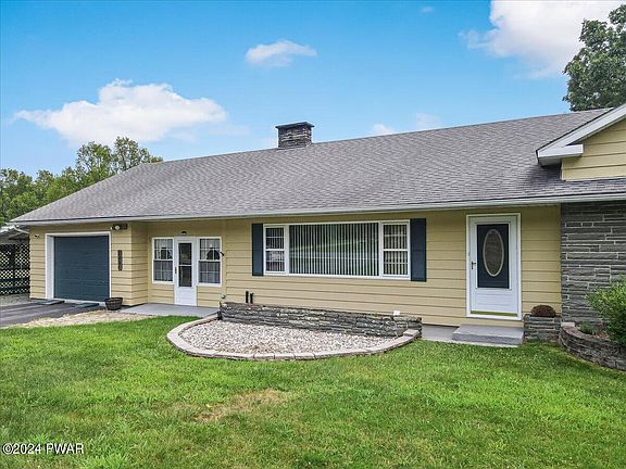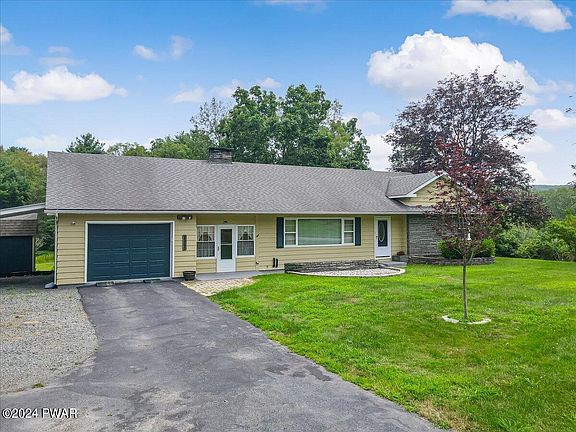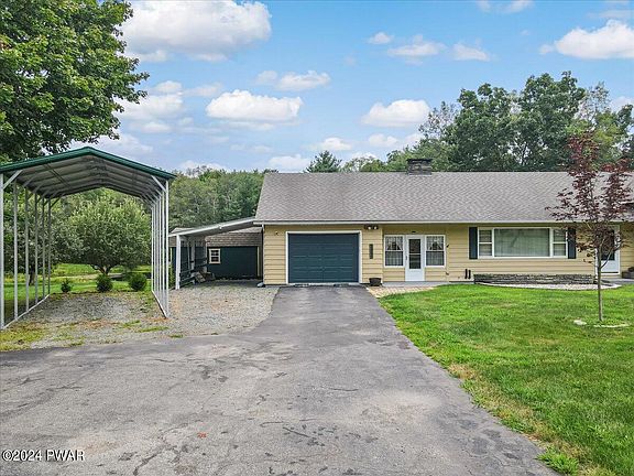 Very desirable, large Ranch style home on the outskirts of the town of Hawley and within Wallenpaupack Area School District. This home sits on 3.26 acres and includes a pond PLUS a stream running through the property. Enjoy ample living/storage space and a well-cared for home. The main level features 2 very large bedrooms, 1 full bathroom, a large living and dining room w/ beautiful hardwood flooring, kitchen w/ newer appliances, an attached garage w/ a bonus workshop in the back, laundry area on the main level AND a HUGE deck overlooking the pond. Newer Roof, septic tank, split unit system w/ air conditioning throughout the house AND SO MUCH MORE!!!The view here is one to see in person! Head downstairs to the lower level and the possibilities are endless! Bedroom 3 is on the lower level along with a brand-new kitchen and bathroom with a very large utility room for storage. This home has great potential for an in-law suite or Mother/Daughter arrangement. The third bedroom has an updated ensuite bathroom with an efficiency kitchen and kitchen, separate laundry facilities and opens out to the yard and pond through a private entrance. Enjoy a paved driveway and large RV/Boat carport and newer shed for storing ALL of the toys and accessories. Minutes to the big lake for boating and swimming and Ski Big Bear for all of your skiing and winter activities. Call today to view this home!