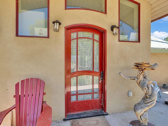 A Perfect Sanctuary in the El Prado Valley ~ Nestled within the tranquil El Prado valley you will find this remarkable contemporary Southwest-style home sitting on nearly 2 irrigated acres with invaluable acequia surface water rights. Surrounded by mature trees and completely enclosed by a private fence, this secure haven offers some of the most breathtaking sunset views to be enjoyed from the backyard deck. The home itself is an architectural gem that is filled with natural light that ensures efficient warmth during the colder months, accompanied by an efficient wood burning stove in the corner of the living room which keeps the whole home cozy. Additionally, the home is pre-plumbed for hot water radiant heat if the new owner desires to upgrade. The fully loaded kitchen is a culinary dream, equipped with stainless steel appliances, ready for you to create and share delicious memories. The unique design features a sturdy metal roof with an appropriate pitch and overhang to deter rain and snow. Outside, the expansive yard is a rare find in El Prado, offering endless possibilities for expansion, gardening, and farming. Imagine cultivating your own bountiful garden or simply enjoying the vast open space for children to play freely, and pets to roam. This property presents the perfect blend of thoughtfully designed square footage and expansive land in the heart of coveted El Prado with easy access to both Downtown Taos, and the Taos Ski Valley or Rio Grande River for fun. Don't miss this extraordinary chance to make this unique residence your own. Don't miss the opportunity to own the perfect blend of comfortable living space and expansive land in the highly coveted El Prado neighborhood.