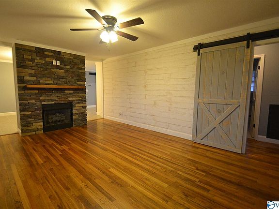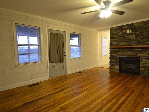 Located just out of town but still convenient to Guntersville and Albertville. Home with 3 bedrooms and 2 baths, fenced back yard, large storage building, refinished original hardwood floors. Remodeled interior with ship-lap walls and stone fireplace. Possible zero down payment loan available for this home.