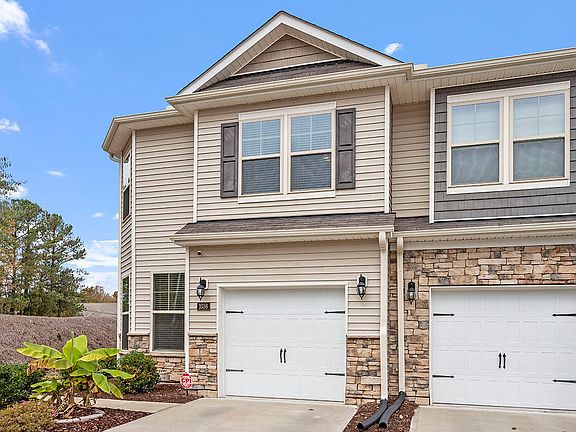Welcome to 1036 Navigon Drive, a beautifully maintained, end-unit townhome located in the sought-after Southern Pointe community of Durham. This two-story townhome, built in 2019, offers 3 bedrooms, 2.5 baths, and an ideal open floor plan just minutes from RTP, Downtown Durham, Duke, and RDU Airport. The main level features a dedicated office space perfect for remote work and a bright living area. The gourmet kitchen boasts granite countertops, a tile backsplash, stainless steel appliances including a gas range, a large island, and a walk-in pantry. The adjacent dining area has sliding doors that lead to a private patio, complete with a privacy fence. Upstairs, the primary bedroom suite offers a huge walk-in closet and an ensuite bath with dual vanity and a tiled walk-in shower. Two additional bedrooms, spacious loft, a hall bath, and a convenient laundry room complete the second floor. This home includes a finished, attached one-car garage and smart home features like a smart lock and thermostats. Enjoy access to community amenities including a pool with a clubhouse, a dog park, and direct access to the American Tobacco Trail. With its prime location and thoughtful design, this move-in-ready townhome provides comfort, convenience, and a peaceful lifestyle in Durham.