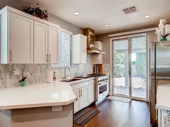 Welcome to this charming 2-bedroom, 2-bathroom home in the heart of Summerlin! This beautifully maintained single-story residence offers a cozy living room with a fireplace and a spacious backyard, perfect for relaxation and outdoor gatherings. The kitchen features a breakfast bar and plenty of natural light, while the covered patio provides an ideal space to enjoy the outdoors year-round. The home comes fully equipped with all appliances and boasts low-maintenance front and rear landscaping for effortless upkeep. Move-in ready and meticulously cared for, this home is waiting for its next owner to enjoy its warmth and comfort!