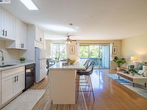0% down available, 3% down with closing cost help available! No Rental Restriction! Experience modern living in a coveted gated community in Oak Creek with this stunning upper unit condo. The open floor plan boasts a sunlit dining area leading to a private deck with tranquil water feature and stream views, perfect for relaxation. The updated kitchen features new cabinets, sleek quartz countertops, and a spacious island. Fresh paint throughout lends a contemporary feel. This corner unit offers added privacy with just one shared wall. Inside, a renovated bathroom complements the roomy bedroom. You'll have a dedicated carport, extra storage with a secure storage unit across Sierra Rd. Enjoy top-notch amenities like a pool, clubhouse, and playground, all covered by the HOA, which also takes care of essentials like water, garbage, exterior maintenance and landscaping. Conveniently located near shopping, colleges, BART, and Kim Ridge Open Space, with RV/extra car space available (potential fee). Notably, there are zero rental restrictions, making it a prime opportunity for investors. This condo combines style, convenience, and an excellent location near by Walnut Creek. Don't miss out!