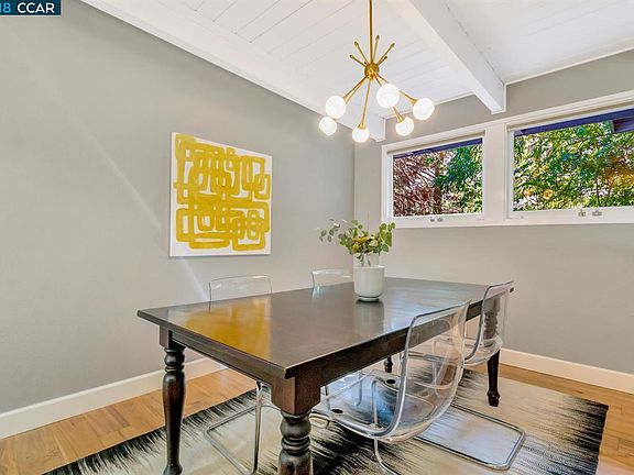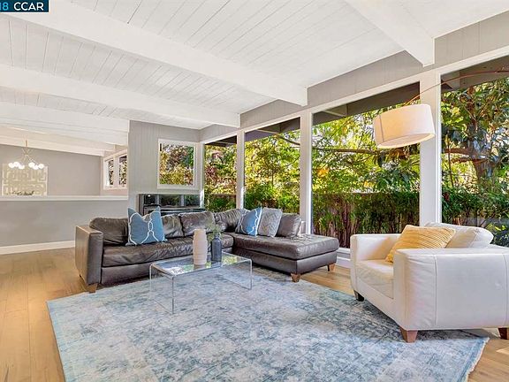 Mid-century beauty on a level .57 acre. Tastefully updated, the living room is stunning with a wall of glass, ship lap ceiling and wood burning fireplace. Adjacent to the living room is a dining area that is perfect for hosting a dinner party. The light and bright kitchen provides access to the patio and grass area. You will enjoy entertaining in the backyard with a large island, built-in BBQ, outdoor TV, large level lawn area and play structure. The master bedroom is spacious with a remodeled bathroom and plenty of closet space. Oak Knoll has been updated with remodeled bathrooms, new hardwood floors and laundry room. You will love this stylish home, the convenience to the freeway and access to Lafayette's award-winning schools.