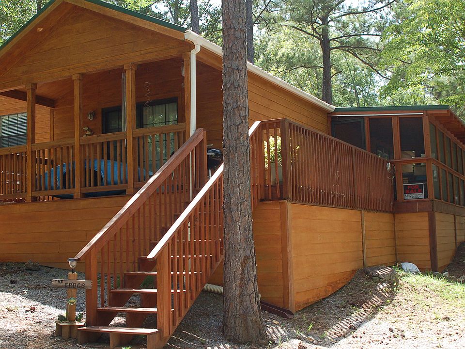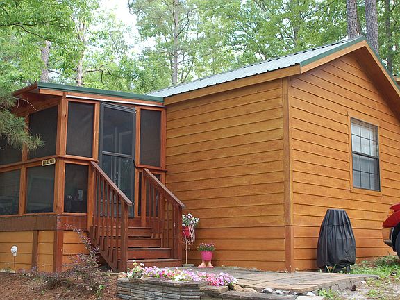 LOGAN MARTIN LAKE 2 BEDROOM 1 BATH ADORABLE "PINE MOUNTAIN" CABIN PARK MODEL LOCATED IN LOGANS LANDING CAMPGROUND. DESIGNATED BOAT SLIP FOR YOUR BOAT ONLY. THERE IS ALSO A COMMUNITY BOAT LAUNCH,BOAT PARKING,POOL,KIDS HUGE PLAYGROUND,SEPARATE POND AND A CLUB HOUSE. 22' X 8' SCREENED PORCH AND WRAP AROUND DECK WITH LAKE VIEWS. A 12' X 8' STORAGE SHED JUST A YEAR OLD TO HOLD ALL YOUR LAKE TOYS. ALL KITCHEN APPLIANCES REMAIN AND HOME IS IN EXCELLENT CONDITION. NICE BIG BATHROOM WITH TUB/SHOWER COMBO. OPEN FLOOR PLAN FROM THE LIVING ROOM TO THE KITCHEN AND DINING AREA. BEAUTIFUL LAMINATE FLOORING THROUGHOUT.MASTER HAS A SEPARATE SLIDING DOOR FOR PRIVACY ONTO THE DECK. SO YOU WANTED IT ALL AND HERE IT IS. SELLER IS MOTIVATED SO CALL TODAY AND BE ON THE LAKE TOMORROW!!