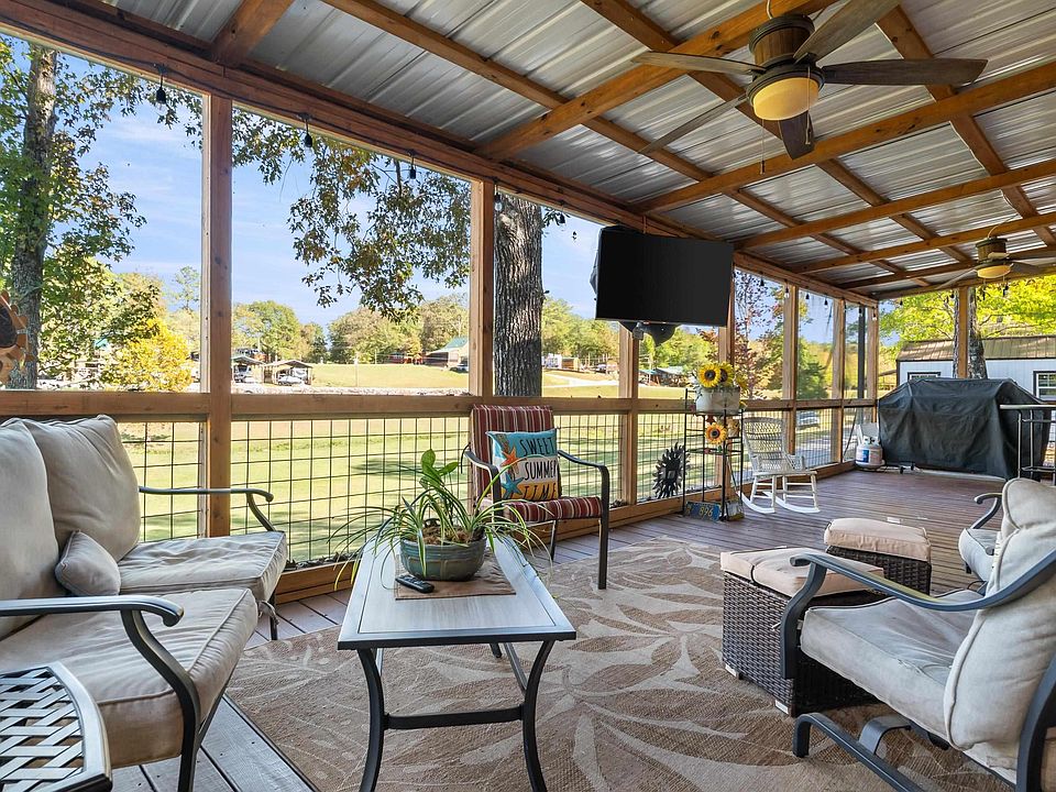Marina boat slipsTwo beautiful barn doorsStocked pondBoat rampCommunity poolLots of natural lightBeautiful wood ceiling