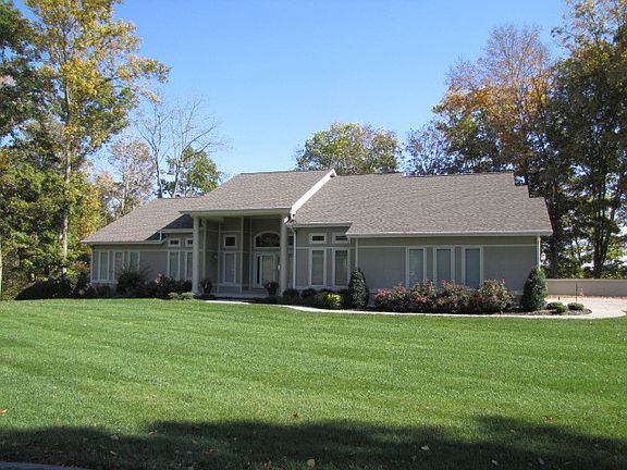 THIS IS A HUGE DEAL!!! Custom built, well maintained, waterfront, year round lake view home close to Lee's Ford Marina for easy lake access. Very much priced to sell. Original list price just under $500,000! Five minutes to town. Two master suites both on 1st floor. Master bath suite with walk-in shower & whirlpool and walk in closet. Open floor plan great room and kitchen with vaulted ceiling perfect for entertaining. Full finished walk out lower level. Downstairs family room and 2 large bedrooms. 3 car garage. Decorator lighting throughout. 1200 sq ft. of decking upstairs and down to enjoy the view and relax. You will love living here.