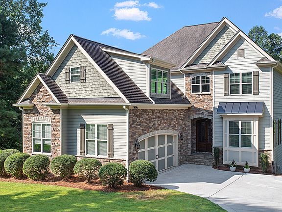 Nestled in a cul-de-sac on a 1.59 acre lot, 1036 Quiet Ridge Circle is the home you've been waiting for. With soaring 12 ft ceilings, hardwoods on the main floor, plus an incredible newly finished basement with built-in safe and extra garage, this home has something for everyone. Step through the gorgeous wooden double doors into the main living area and soak in the entertainer's dream floor plan: formal dining room, butler's pantry, living area with built-ins and stone fireplace/hearth, and a chef's kitchen with Blue Star professional style range. Dine al fresco on your screened porch, or keep things casual inside at your kitchen island or in the breakfast room. A large secondary bedroom with full bath and a drop zone off the two-car garage round out the first floor. The basement was finished by the current owners (permits in docs) and boasts an additional 1000+ sqft of living area with custom built-ins, wet bar, and wine fridge. There's also an office, full bath, built-in safe, and third-car garage on the basement level. Enjoy serene outdoor living in your expansive backyard on your huge patio with built-in fire pit. The owner's suite on the 2nd floor boasts hardwood floors, two closets (one connects to the laundry room with foldout ironing board), and a spa-like bath retreat with separate shower and tub and dual sinks with countertop appliance storage. There's plenty of room for friends and family with two additional bedrooms and bathrooms as well as an oversized bonus room over the garage with built-in shelves for showcasing all your hobbies. Enjoy the neighborhood pool for extra relaxation, and the property backs to HOA-owned land for extra privacy.