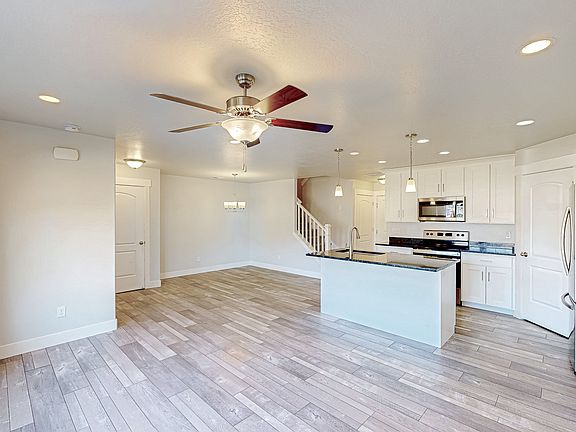 Be sure to check out the 3D tour. This beautifully upgraded townhome offers modern finishes, open living spaces, and an unbeatable location. The kitchen features white ceiling-height cabinets, granite countertops, stainless steel appliances, and recessed lighting. Stylish two-tone paint, laminate flooring, upgraded low-profile carpet, and upgraded railings elevate the home's design throughout. The spacious master suite includes a large walk-in closet, double vanities, a garden tub, and a separate shower. Additional highlights include a high-efficiency furnace, attic storage, and an oversized 2.5-car garage. Positioned at the end of the development with no units in front, this home enjoys a large park area and serene mountain views. Ideally located near excellent shopping, dining, and convenient freeway access, this townhome offers comfort, style, and convenience all in one.
