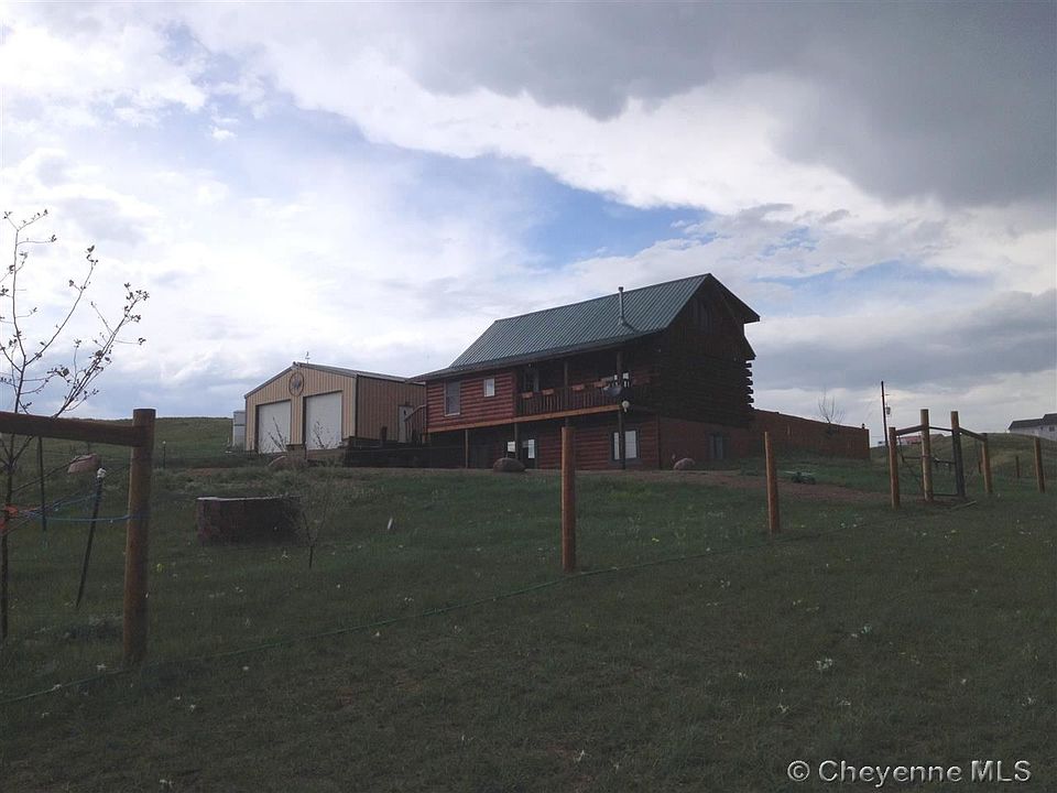 This stunning property combines vacation home and horse lover's dream! Close to Curt Gowdy State Park & Crystal Reservoir, this property offers so much and just a short drive to town or relaxation! The log home is gorgeous, spacious, bright, inviting & opens to the secluded backyard with huge new deck to enjoy the peace & quiet of the countryside. Watch the sun come up from the front porch looking out over the pasture with new horse barn complete with stalls & separate hay storage & the view is amazing. Look out over open spaces, green lush pastures, bluffs & rock formations. The 40x30 shop with double overhead doors and wood stove keep your vehicles & toys protected and has attached dog run. Beautiful custom tile in the updated bathrooms, custom railings & new pellet stove just to name a few of the amenities inside. Come, take a look and decide to call this HOME!
