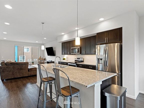 Welcome to Greenbridge, an optimally located community close to parks, downtown Seattle, the airport, and walkable to many restaurants and cafes. This spacious, contemporary, 3-story townhome is the largest residence (Model D) in the development with beautiful finishes and upgrades. Spacious END UNIT with large windows allowing lots of natural light. Kitchen features quartz counters, tile backsplash & walk-in pantry plus all new stainless-steel appliances and an amazing island as the centerpiece of the open concept plan. Upstairs includes Master with large shower & walk-in closet plus two more bedrooms, full bath and utility room. This home features A/C, balcony, attached 1-car garage + shop and downstairs bedroom with in-suite bath.