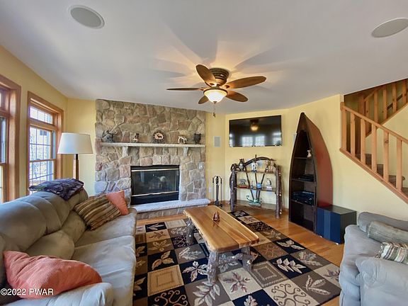 Custom-built beauty in Wallenpaupack Lake Estates, furniture & full-home generator included! You'll notice the expansive driveway, perfect for hosting the whole family. The property has a garage, storage shed, & big upper deck, siting on just under 1/2 an acre at the end of a cul-de-sac. From the hardwood floors & wood burning stone fireplace, to the perfect layout for entertaining, you will see you & your family here! The master bedroom is located on the main floor, with a full bathroom and walk-in closet. Also on the main floor is the laundry room, a 1/2 bath, and a great bonus room perfect for an office/den. Upstairs you will find 2 nice size bedrooms and a full bathroom (with storage galore!). Unfinished basement that you can continue to use as-is or finish to your liking, Beds Description: Primary1st, Baths: 1 Bath Level 1, Baths: 1 Bath Level 2, Baths: 1/2 Bath Lev 1, Eating Area: Dining Area, Sewer: WS Comm Central, Beds Description: 2+BED 2nd