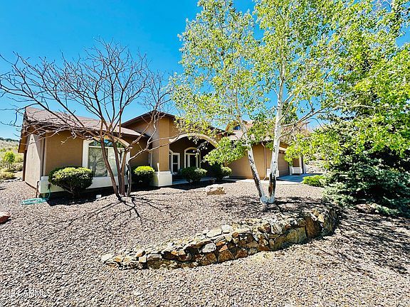 Gorgeous Yavapai Hills house. Open floor plan with high vaulted ceilings. Move in ready. This 3 bedroom 2 bath house sits on shy of 1/2 acre lot with mountain views with front and rear covered patios. The 1962 square feet, 3+ car garage and cover patio gives ample room for everyone. New roof in 2021! The kitchen boast upgraded Hickory Cabinets, Stainless steel appliances, with Gas stove and French door fridge. Wood plank tile flooring makes for low maintenance.