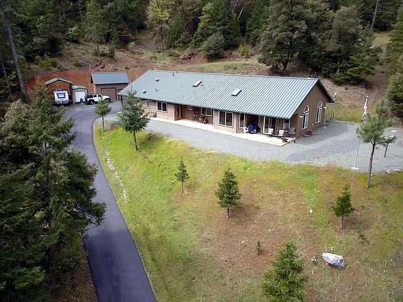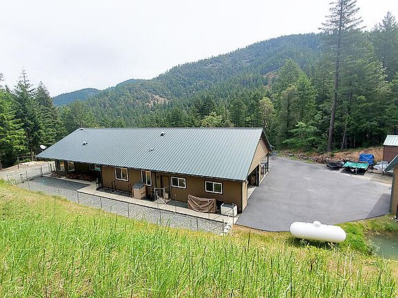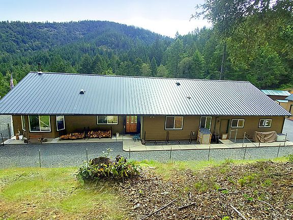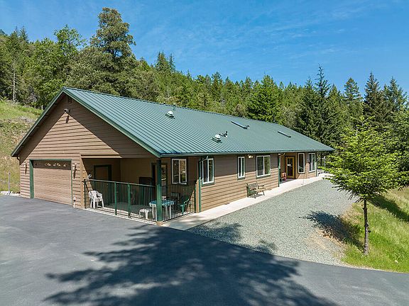47 Forested Acres, Peace, Privacy & a Beautiful 2707 s/f Custom Home (Blt 2013, RMV over $900k!) Just 15 min from Grants Pass & 10 degrees cooler on the North Face of mtn. Fire Resistant Metal roof & Cement-fiber siding, New Flooring & Ext Paint. Covered front/back patios w/ Sidewalks. Steel front/back gates. Retractable screens. Vaulted ceilings, Skylights, Solar tubes. Blaze King wood stove. Dbl & Triple pane windows. Granite Slab Counters, Breakfast bar, Blt-in oven, warming oven, Gas cook-top w/ downdraft, deep sink w/inst. hot water, Walk-in Pantry. Italian tile walk-in shower, Soaker tub, Caesarstone counters. Guest w/Blt-in Murphy Bed. Lots of Storage. Sep. Office or Dining rm. Large mudroom w/ sink. Gas Furnace, New A/C. 10k generator. 500-gallon propane tank. On demand water heater. Central Vac. Whole house fan. Wired/Alarm. Fin. 2 car gar. w/ epoxy floors, 10 x 20 stand-up rm above. Shop, 2 carports, shed. Asphalt DW w/ sec. gate. Seasonal Creek & Pond. Wildlife. Trails.