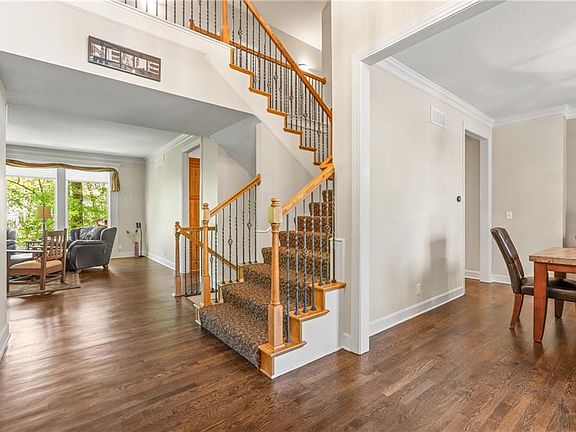 Gorgeous 2-Story Home on a Cul-de-Sac in The National! Perfectly situated in one of the area’s most sought-after neighborhoods, this beautifully updated home offers a winning combination of luxury, space, and functionality. The main level is built for entertaining with recently refinished hardwood floors, an inviting living room with an updated fireplace, and stylish lighting upgrades in both the dining room and kitchen. The chef’s kitchen impresses with wood cabinetry, granite countertops, a large island with breakfast bar seating, stainless steel appliances, a tile backsplash, and an open layout that flows into the cozy hearth room and breakfast area. Upstairs, you'll find generously sized bedrooms—each with walk-in closets, ceiling fans, and private bath access. The luxurious primary suite features a sitting area with fireplace, a stunning remodeled bath, and a massive walk-in closet with built-in island bench. Enjoy peaceful, wooded views from your private screened-in deck. The finished walkout lower level offers expansive additional living space, complete with tiled floors, a wet bar, a fireplace, a large rec room, and even a secret reading nook. Major upgrades include: two HVAC systems (2013 & 2018), new roof & gutters (2021), new patio, new exterior paint, remodeled kitchen & primary bath (2019), new garage doors (2019), raised deck (2018), and more! Ideally located near shopping, dining, and events along the river, with easy highway and airport access. Pool close by (included in HOA). This is truly a must-see home—schedule your private showing today! The National memberships available. https://online.flippingbook.com/view/949746735/