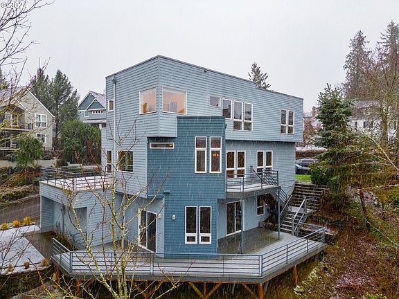 Discover the epitome of luxury living in the coveted Forest Heights neighborhood with this one-of-a-kind contemporary masterpiece. Boasting over 3,000 sqft of sophisticated living space and a sprawling 1,000+ sqft deck, this home is an entertainers dream come true, offering breathtaking views that promise to enchant year-round. Step inside and be captivated by the modern elegance of 3/(4th no closet) spacious bedrooms, each with their own distinct charm, and 3.5 well-appointed baths. The home's flowing layout is perfectly designed for hosting, with a large kitchen featuring ample work and lounge spaces set to inspire your culinary adventures. Adjacent to the kitchen, a sizable dining room awaits, leading into a living area graced by one of the home's 3 cozy gas fireplaces the ultimate setting for relaxation and social gatherings. As you explore further, you'll encounter luxurious updates, including remodeled bathrooms that reveal an exquisite blend of unmatched comfort and striking beauty, all accentuated by the finest design elements. A main-floor bedroom offers the convenience of an en-suite bathroom, ensuring privacy and ease for family or guests. The crown jewel of this residence is the primary suite, an authentic retreat complete with its own fireplace and an expansive shower offering the most captivating views in the house. The second-level bathroom does not shy away from opulence either, boasting a beautifully designed shower and a double vanity. Entertainment extends to the basement, where you'll find a restaurant-grade bar, a gaming area, and a media room, all brought together by another inviting fp, setting the stage for memorable moments. Nestled on a private corner lot and framed by mature trees and meticulous landscaping, this home is a serene escape. With its proximity to trains, the tranquil Mill Pond Park, and a selection of coffee shops and dining options, its location is as exceptional as its features.This is not just a home, but a lifestyle! [Home Energy Score = 3. HES Report at https://rpt.greenbuildingregistry.com/hes/OR10216912]
