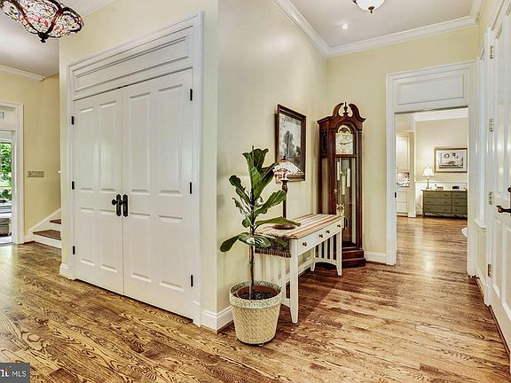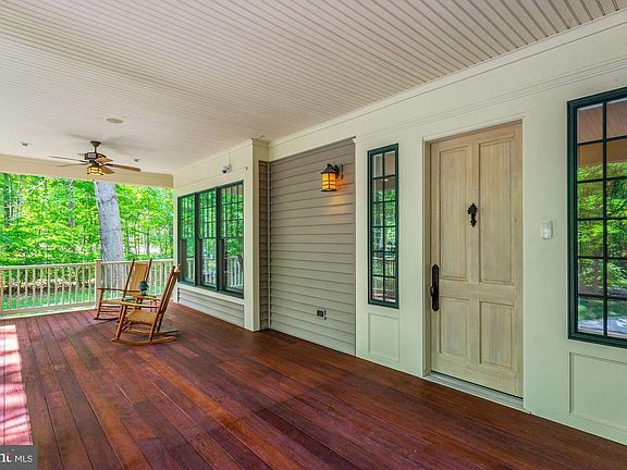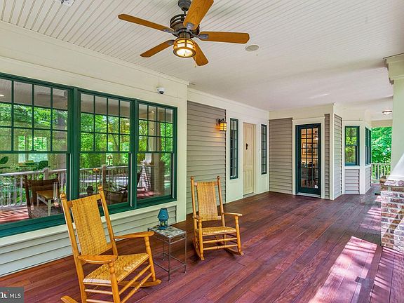 Majestically set on 2.2 acres of a premium, gently sloping, private and wooded, estate lot adjacent to expansive Columbia Association parcel with a stream and lightly landscaped and tended natural areas surrounded by a vast variety of wildlife. Design inspired by a seasoned architect showcasing over 6,000 sq. ft. of cape cod, bungalow, craftsman, arts & crafts and prairie home styles. Precision architecture artfully enhances stunning details throughout and embodies higher end construction quality and materials for a more solid, well-built, reduced maintenance and enduring home. A full length porch adorned with Brazilian Ipe decking, bead board ceiling and fans welcomes you to this grand home. The main level highlights gorgeous oak hardwood flooring, 10 foot ceilings with crown molding, craftsman style newel posts on the dual staircases with matching fireplace panels and mantle creating an impressive focal point. Abundant natural light beams through the six skylights, transom windows and glass doors. Enjoy preparing your favorite meals in the gourmet kitchen that features top-of-the-line stainless appliances and a dual walk-in pantry. A vaulted wood ceiling soars in the atrium that includes removable panels to allow cool breezes. The owner~s suite offers a room size walk-in closet with a luxurious bath. On a convenient and privately set middle level are located 2 bedrooms and a dual entry bath with its own private deck and hot tub. The lower level provides a billiard room with hand-built wall moldings, a family room and a hobbyist~s dream workshop and walkout office. Rich in comfort and style and surrounded by nature, this extraordinary home radiates luxury living at its finest. Detailed list of features and updates available.