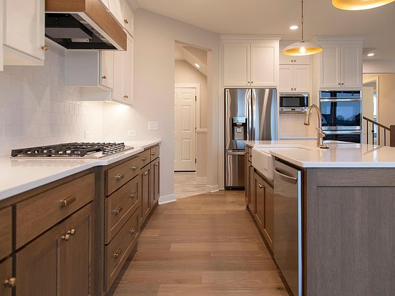 The Hillcrest Sport in EVANSWOOD is COMPLETED and available for a quick close! This one of HANSON BUILDERS most popular floor plan designs! Custom designed kitchen with large center island, custom built cabinetry, and walk in pantry! Stone fireplace feature wall with built-in cabinets, wood shelves with LED strip lighting. The upper level features 4 bedrooms, including a private Owner's Suite, bonus room, and walk through laundry. Finished lower level with 5th bedroom, family room, game room, wet bar and the indoor Sport Center is fun for all ages and activities all year round! Whole house is wrapped in James Hardie cement board siding with Marvin windows. Community Pool and Clubhouse neighborhood! New elementary school COMING SOON + Maple Grove High School! Additional spec home and lots available in Evanswood!