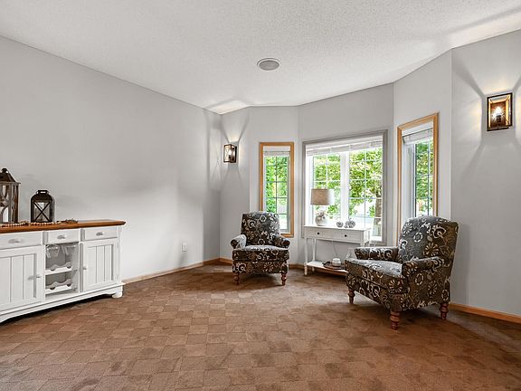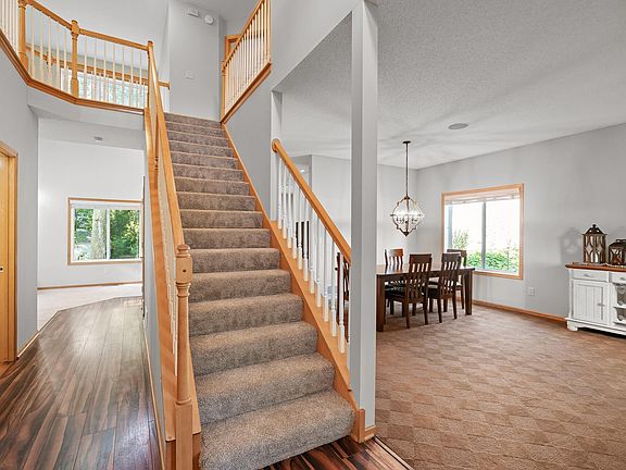 A beautiful 2 story home with a fantastic open floor plan. Enter into this dramatic two story living room with tons of natural light. Enjoy a large kitchen with center island and abundant cabinets. Fresh paint and carpet throughout the home. Main floor bedroom and a airy 4 season cedar porch with a wooded backyard view. The backyard is ready for you to entertain with a basketball pad and a grilling patio. Enjoy your holiday dinners in the spacious formal dining room. Head upstairs to a massive Master suite with vaulted ceilings, sitting area and enjoy the large master walk-in closet complete with California closet style shelving. The extra large Master bath has dual sinks, tub and a separate shower. 2 more large bedrooms upstairs! Lower level family room, bedroom and theater room! Spacious attached, heated and insulated 3 car garage. Easy access to 35W. Welcome to YOUR NEW HOME!