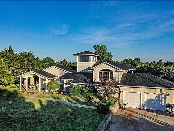 Beautiful Custom built "cape cod" style home situated just minutes from town with fantastic views. 1020 sq ft finished one-bedroom Mother-in-Law suite with own entrance, complete kitchen, ADA compliant bathroom, access to rest of home and living/dining room. 2 dining areas and 2 living rooms, one has a balcony. Great views from the "Eagle Nest" skyview room over looking the tops of the trees and can be an office. The Eagle Nest Tower offers a beautiful view of Weatherford and Hydro, and in July views of the fireworks from Weatherford and Hydro can be seen. Lots of wildlife to watch and enjoy, including a neighborhood Peacock named Kevin, a flock of turkeys and rabbits. Recently built 500 sq ft insulated shop with driveway and an RV hook-up.
