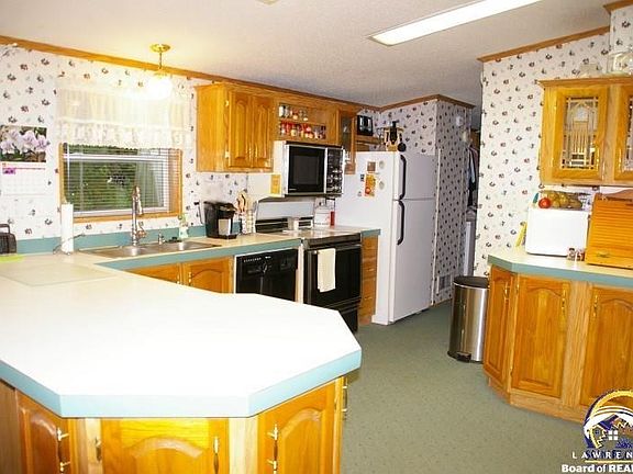 One owner home near Lake Perry on paved road. Very open floor plan with 3 bedrooms, 2 baths, 2 car garage and includes 4 lots. Screened in porch plus a wood deck, storage shed, community pool, club house and a short distance to the lake. Almost country and easy commute to Lawrence or Topeka.