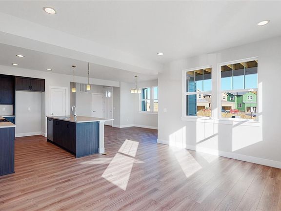 This home is 2,055 sq. ft. finished above ground and has 3 bedrooms, 2.5 bathrooms, a patio, a loft with a covered deck, a full basement and a 2-car garage. Designer finishes include luxury vinyl plank flooring, flat panel Tharp cabinetry with soft-close doors and drawers throughout the home, quartz countertops, metal interior railing, and stainless steel KitchenAid appliances. Features our Modern Design Suite. Finished in our Western Shingle Elevation. This home is a corner lot!