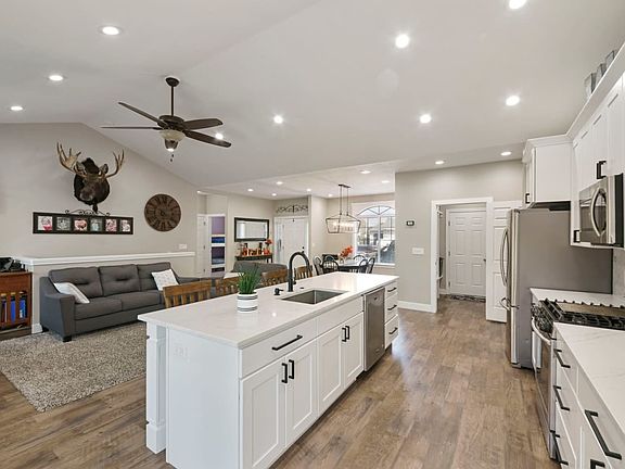 Updated Open Concept home in amazing neighborhood. Basement Walkout and apartment with a full kitchen downstairs. Updated kitchen with new cabinets, LVT scratchproof waterproof Flooring and quartz countertops. LED lighting throughout house. Backs Freedom Elementary, walking paths, fully landscaped yard, storage shed, RV Pad, 2 car garage, master with jetted tub, separate shower, and walk in closet.