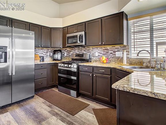 AWESOME LOCATION! This very well-maintained rancher is in the perfect setting! It's located near the community rec center, between two parks, and between the high school, middle school and two elementary schools. It's loaded with updates, both inside and out! On the exterior you can enjoy a composite deck, new trees/perennials, stone patio, privacy fence, newer roof with 40-year transferable warranty high-impact shingles, fresh paint, Wi-Fi managed sprinkler system, two EV outlets in the garage and lien-free solar (with battery backup). Venturing inside, the kitchen includes granite counters, stainless steel appliances, soft-close cabinets, luxury vinyl plank flooring and an eat-in kitchen area with formal dining right around the corner. Also, on the main floor you'll notice the vaulted ceilings, living area with gas fireplace, a primary suite with large walk-in closet and full bath with double vanity. A second bedroom and full bath complete this floor. The lower level includes a large living area wired for surround sound, wet bar with mini fridge and wine fridge, laundry room, two bedrooms with walk-in closets, a full bath with double vanity and double-insulated walls for energy savings and noise tampering. This house is truly a MUST SEE!