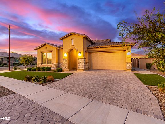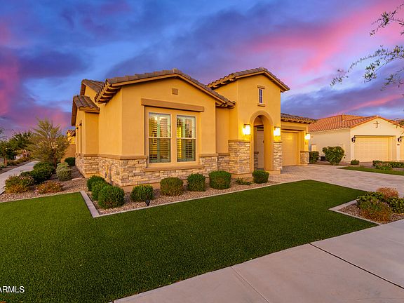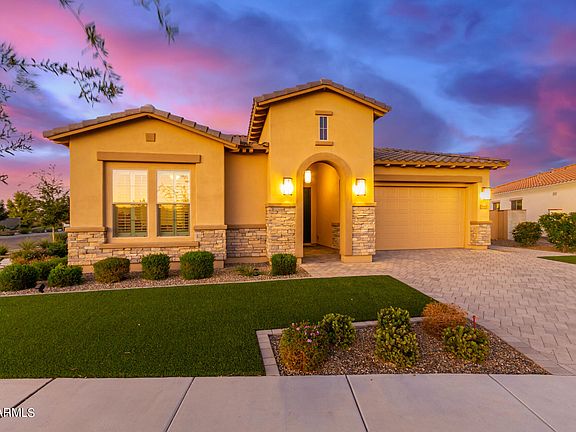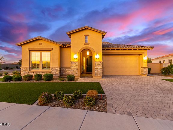 This spectacular David Weekley masterpiece is now available! Upgraded to the max and sitting on an oversized premium lot in a gated section of Eastmark, this property stuns in every way. Beautiful wood-look tile leads you to the great room, with a kitchen that is magazine worthy: Giant ''diamond'' island, staggered white cabinets, gas drop-in stove and custom backsplash to the ceiling! The floor plan is perfect, w/4 large bedrooms and an additional ''flex space'' that can be used several ways. The master bath is 5-star, with only the best finishes. Out back is a true upscale resort: A heated (both gas and electric) pool, firepit, pergola, build-in BBQ, putting green, turf- divine! Superior Weekley construction is legendary and evident throughout. Eastmark is the place to be- come see why!