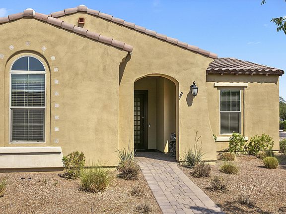Welcome to Encore at Eastmark! This highly sought after active adult community is host to numerous amenities and activities including a rec center, workout facility, tennis, pickle ball, heated pool/spa & walking /biking paths along beautiful greenbelts just to name a few. Now's your chance to live in the neighborhood of your dreams in the HOME of your dreams. Builder doesn't make this model anymore so jump on this opportunity while you still can. This desirable open floorplan features 10' ceilings (most others are 9'), wood look tile flooring t/o, lots of windows t/o and floor to ceiling 3 panel retractable glass slider which allows the natural light to flow so beautifully into this space. It's light, bright & inviting. The perfectly appointed chef's kitchen features custom built butler's