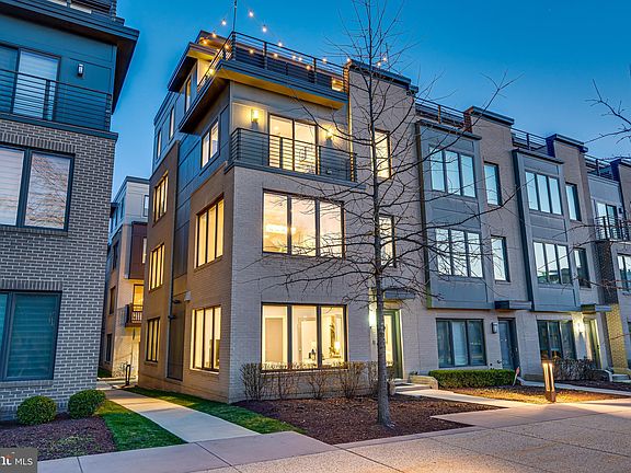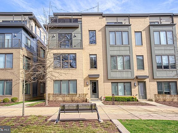 In one of Montgomery Row's finest locations overlooking the Community Park, this generously-sized 4-level, end-unit is finished with high-end materials and custom appointments throughout creating a gorgeous, welcoming home. Built by EYA in 2017 with more than $150,000 in upgrades, it's a home for modern living with flexible spaces, such as the entry-level bedroom/office suite and the 4th-floor loft / family room (optional 5th bedroom) with wall of windows, full bathroom and another closet. Everywhere, you look are quartz countertops, oak hardwoods, custom rugs, Hunter-Douglas blinds and upgraded light fixtures. The open floor plan on the main level is ideal for entertaining with a built-in sound system, a striking white kitchen, gas fireplace and gleaming chandelier. The primary suite offers dual bathroom sinks and a custom-organized walk-in closet. The roof terrace off the family room is an urban oasis with a gas fireplace and contemporary finishes. The 2-car garage (serving as an in-home gym!) has plenty of storage with built-in shelving and organization system. Quietly tucked amongst office complexes, the community parking is permitted, ensuring spots for guests. Additional parking is available in the adjacent office garage. Easy access to shopping, restaurants, downtown Bethesda, 270, & 495. Low HOA fees.