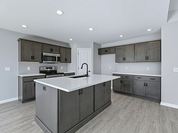 Quartz countertopsVinyl plankSmooth-top rangeTray ceilingCeiling fanDual sink vanityAttic access