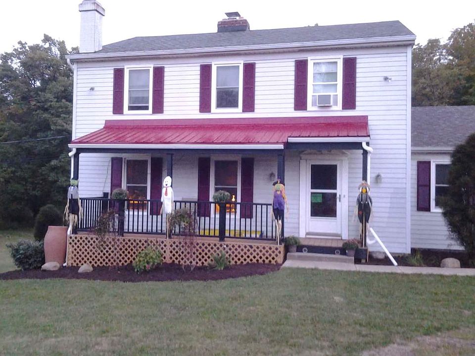 Welcome to our country home! Gorgeous Colonial on 2.61 acres is set back from the road and has 3 large bedrooms, 2 full and 1 half bath. The new front porch (2015) has enough room for the porch swing and several chairs. The eat-in kitchen was remodeled in 2011 with Kraftmaid cherry cabinets with granite counter tops and all new appliances, new French doors lead to an expansive rebuilt multi-level deck with stairs to the back yard. 2 levels of the deck are newly covered with metal roofing. The deck overlooks the beautiful, peaceful, wooded lot. The first floor also has new (2012) engineered hardwood floor, a formal dining room, spacious living room with a brick fireplace to keep you warm on cold winter nights, laundry room with all new Kraftmaid cabinets, tile floor, appliances and dog door to the deck, office with new carpet, and half bath complete the first floor. The walk out basement with glass block windows has a carpeted recreation room with French doors leading in to the work shop. The rec. room has freshly painted newer baseboards and trim along the walls, stairs and doorway! The master suite has a full bath, walk in closet with built-ins and fireplace! The other two bedrooms on the second floor are spacious with large closets. The guest bathroom has also been remodeled in 2011. The 2 car attached garage has an access door which is another super feature in this great home. All appliances, the hot water tank, well pump and the water softener have been replaced since 2011. New whole house Generac generator installed 12/2021.