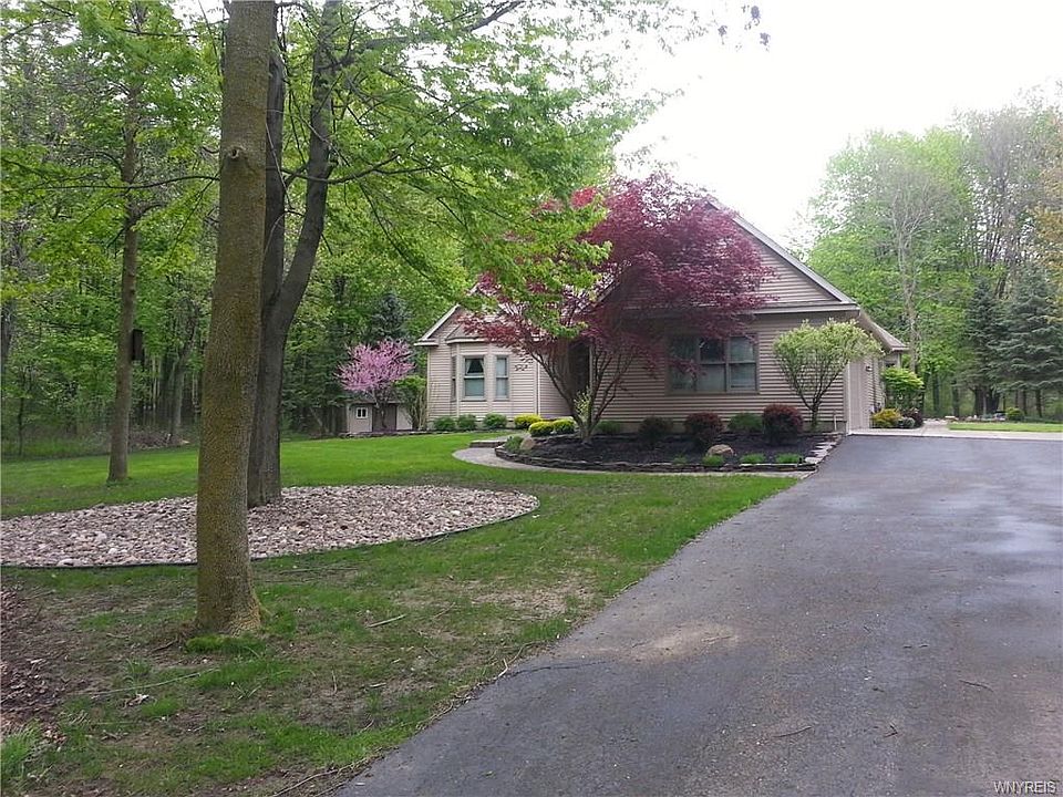 Custom 3 bdrm, 2 bath ranch w/attached 2 car garage plus 32x24 detached garage on 4.8 acres on private road. Nature lovers dream home- surrounded by Tillman Nature Preserve. Beautiful open flr plan, Kitchen w/ granite counter top, island , appliances, plenty of wood cabinetry, ceramic tile flr, eating area w/ slider to sunroom. Great rm w/ flr to ceiling stone gas fireplace, carpet, cathedral ceiling w/fan, wired for surround sound w/Bose speakers. Formal dining rm has hardwood flr. French doors lead to den. Master suite w/tray ceiling, sliding doors to deck, walk in closet, bath w/free standing shower, tub & vanity w/his & her sinks. 2 bdrm w/carpet & large closets. Full basement, C/A, Security & Sprinkler System, 10 kw whole house generator. Deck w/Sunsetter awning, Koi pond, shed