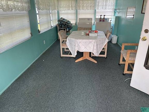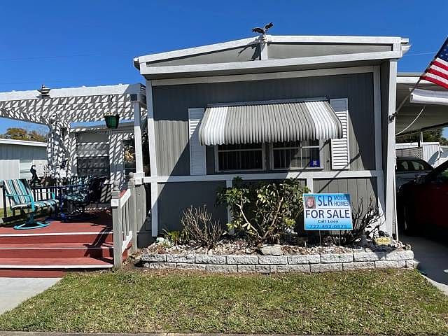 This home is located in a 55+ Age Required Retirement Community The lot rent for this home is $485.00 per month that includes Water, sewer, trash and mowing. This home has 672 Square feet of living space with a Florida room and an open patio. This home has had a full termite inspection and treatment in October 2020. The living room has plenty of large windows, vertical blinds and a ceiling fan for added comfort. The eat in kitchen has laminate flooring, lots of cabinets, wall oven and a nice sized pantry. The guest bedroom is a great size with a ceiling fan, closet and built in dresser. The bathroom has been updated with tile flooring, New vanity with storage, and a large walk in shower with tile surround. The main bedroom will hold a king size bed with large windows, ceiling fan, 2 closets and a large built in dresser. The Florida room is very big with lots of windows to let in our beautiful Florida sunshine, washer and dryer. The shed is located just off of the carport, with an additional shed just behind it giving you that much more storage space. This home is located in Honeyvine MHP, that is a 55+ age required retirement community with a beautiful pool. ***DISCLAIMER: The information in this listing is believed to be true and accurate, and has been provided by the seller. SLR Mobile Home Sales, LLC cannot guarantee or warrant the accuracy of this information or the condition of any property. Since Mobile Homes are sold AS IS, we recommend that you inspect any home that you are interested in purchasing and recommend that it be independently verified by appropriate professionals. The buyer assumes full responsibility for obtaining all current rates of lot rent, fees associated with the mobile home community, park, or home from the community/park manager. SLR Mobile Home Sales, LLC is not responsible for the quoting of said fees.