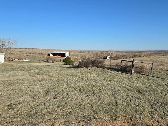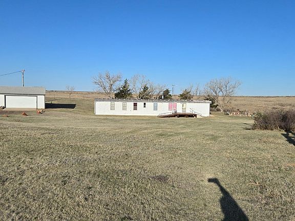 Secluded and secure away from the hustle and bustle of town is a quaint little 13 acre plot overlooking the Cimarron River valley. The view from this place is amazing and you can see the trains as they cross the Samson of the Cimarron river bridge. A 2 bedroom 1979 Mobile Home, two car garage, 40 x 80 metal building with dirt floor electricity and an air line running from the garage, 2 truck box containers and a vintage Rock Island boxcar with lean to are all part of this set up. A nice garden area, trees and fencing make this the perfect place to have a few animals and get away from the city. Located next to Arkalon Park, you will certainly have lots of wildlife and recreation at your fingertips.