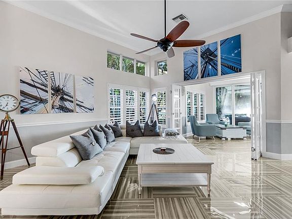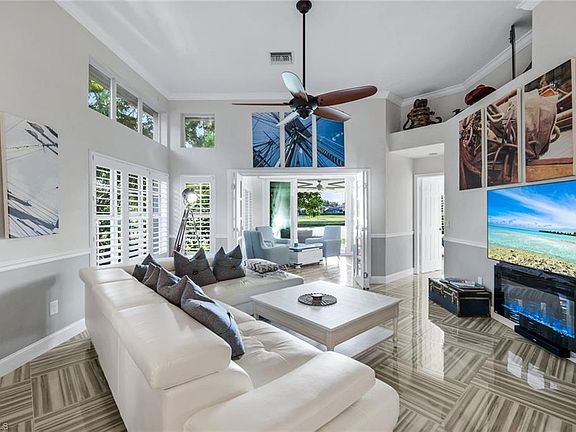 Welcome to The Crow’s Nest, the coolest home in Quail Creek Village, and easily one of the most unforgettable homes in all of Naples. Strategically redesigned and rebuilt over nearly eight years, this 3 bedroom, 2.5 bath residence is the result of a true labor of love, combining contemporary chic design with a luxurious resort like atmosphere. One of a kind details have been carefully incorporated to create the ultimate lifestyle, starting in the modern chef's kitchen. Poured in place, thick concrete countertops, an induction hibachi cooktop with its own advanced vent hood, Samsung appliances, and extraordinary amounts of cabinetry check every box for both design and function. The open concept living space, made possible by demolishing and reconfiguring the original floor plan, is perfect for all sorts of gatherings and relaxed everyday living. Natural light floods the great room through plantation shutters, while crown molding and diagonally laid tile highlight the home’s blend of timeless and trendy elements. The newly built western facing addition is your canvas for a potential media room, stunning home office, or to be used how it is currently as a conversation sunroom where laughs are shared and views are enjoyed; this space can also be closed off from inside through French doors for true ‘al-fresco’ living. Onto the lakeside outdoor paradise, the tiled patio is fully loaded with furnishings, a gas firepit, a motorized sun awning, and electric shades and screens with sunsets even more remarkable than the gorgeous interior. The owner’s private sanctuary suite features a spa inspired bath with dual rain showerheads, a soaking jet tub, floor to ceiling tilework detail, a European style bidet, and even an electric fireplace. Guests enjoy equally inviting accommodations with two bedrooms and an eloquent bathroom setup with double showers, scalloped accent wall tile, a floating vanity, and ample closet space. The renovation’s new golf cart garage provides room for two cars and a golf cart as well as the home’s extended paver driveway. Offered fully turnkey, The Crow’s Nest comes complete with curated furniture, original one of one artwork, decor, kitchenware, televisions, fireplaces, and yes, even the golf cart. Exclusively located within the Quail’s Nest enclave of Quail Creek Village, you will enjoy access to a private cabana and pool steps away which only 53 properties can take advantage of. Homeowners also have the privilege of Social Membership included in the fees with unlimited summer golf, reciprocal play, bocce, tennis, pickleball, and social events at the redone clubhouse. With a proven history as a seasonal rental, this could also be an exceptional opportunity for investors seeking upside potential. Bring your clothes, toothbrush, and step into an unparalleled, resort like lifestyle. EXTENSIVE UPGRADE LIST IN SUPPLEMENTS!