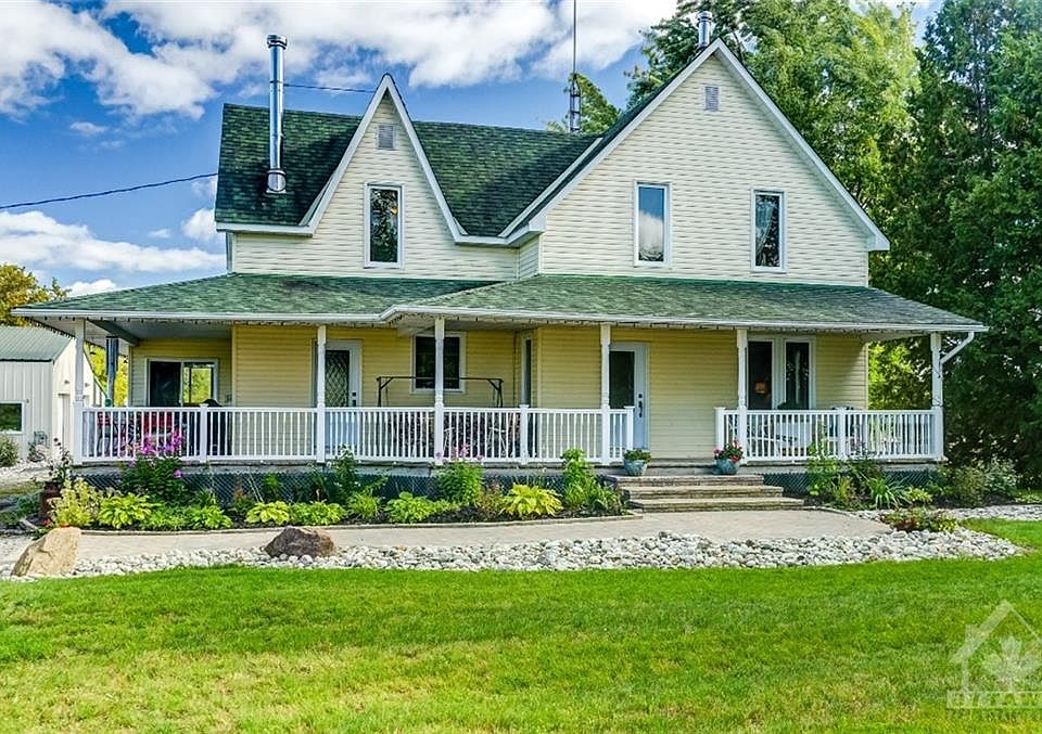 Country living at its finest! This well maintained and cared for home has a spacious 3 bed, 2 bath layout and includes a huge oversized heated/cooling garage and workshop with a bonus carport/storage facility. Upon arrival you will be greeted with a beautifully interlocked walkway and grand wrap-around porch. The main level features a renovated kitchen with stone countertops, wide stainless steel sink and appliances with gorgeous cherry wood cabinetry. A powder room, separate dining/living room, gas fireplace, charming sunroom, laundry unit and showcasing rich wood plank flooring complete this level. The second level provides three generous sized bedrooms, a full bath and study area. Situated on over 4 acres of land and surrounded by nature's finest and steps from the river, this home offers plenty of space for your family to enjoy. 24 Hours Irrevocable on all offers as per form 244