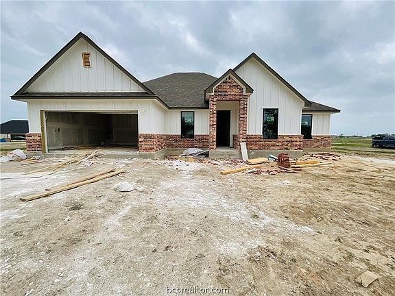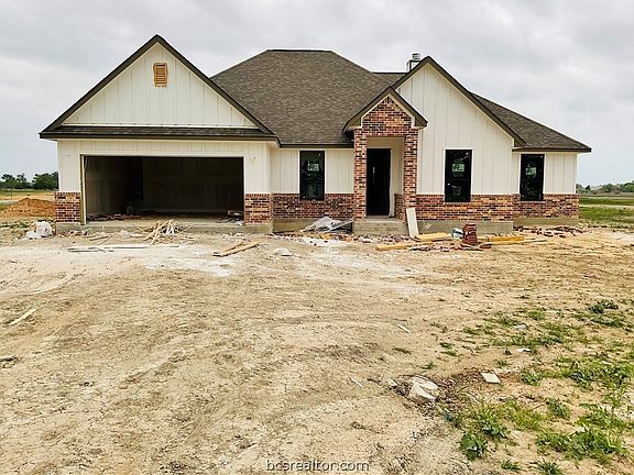 This beautiful, new construction, 4 bedroom/3 bathroom includes an Study/Office and is situated on an acre just outside of Bryan/College Station. Home features an open living room with shiplap accents, raised ceilings, custom cabinetry, and a beautiful fireplace.