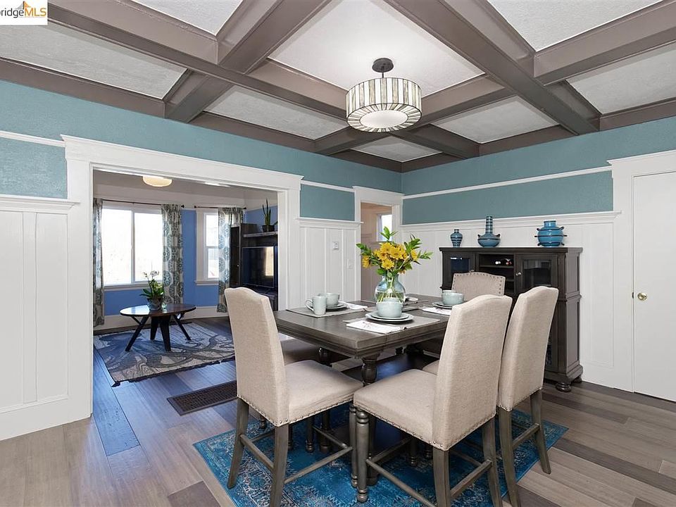 Lovely renovated 2-story 1901 Colonial Revival Victorian w/tons of character. Vintage architectural detailing combines w/chic modern finishes. Lower level: Contemporary London Fatano Italian porcelain tile at entry, stylish dark grey ash bamboo floors, modern light fixtures, beautifully restored turn-of-the-century wainscoting,.Elegant dining area w/coffered ceilings. Cheery living room w/expansive windows. One guest bedroom & renovated 1/2 bath downstairs. Eat-in kitchen opens to delightful rear yard w/room to relax, entertain, or watch your vegetable garden grow! Upper level: High ceilings, great division of space -- 2 spacious bedrooms are separated by full bath. Front bedroom w/charming window seat. Roomy rear bedroom w/large windows & abundant light. Cozy reading nook. Both bedrooms have walk-in closets. Washer & dryer. Dual pane windows throughout. New roof 2018. Sewer lateral in compliance. Minutes from BART, Downtown Oakland, and Hwy 880.