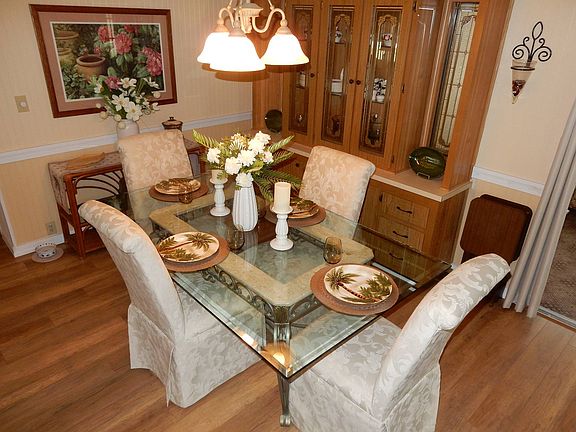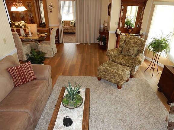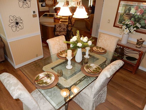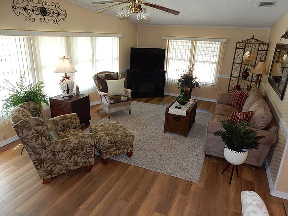 Looking for a spacious home to enjoy the Florida lifestyle, look no further. This 2-bedroom, 2 bath double wide in a very quiet 55+ community is in a safe and desirable area that is pet friendly located close to I-75. Beautiful 26' X 57' open floor concept 1987 Palm Harbor 2 bedroom 2 bath double wide on desirable corner lot. Side by side carport has entrance to lanai. Home is fully furnished except for personal items.. Large, bright living room has nice laminate flooring and flows into dining area. Built in dining cabinet offers more storage space. Sliders lead out to nice size carpeted lanai and has new A/C unit. Kitchen has laminate flooring and center island with flat cooktop and seating for 4. Open carpeted family room off of kitchen is perfect for entertaining. Both bedrooms are carpeted and have attached tiled baths with new sinks and faucets. 2nd bath has tub/shower combo and another doorway leading to laundry room. Master bath has step in shower and large separate garden tub. Windows in this home have been upgraded and air conditioner is a 2018. This home is a perfect place for entertaining and will not last long. Come in and tour it today!