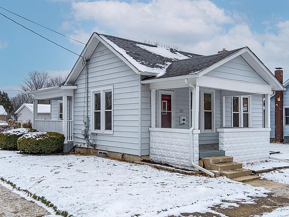 CUTE AS A BUTTON IS THIS 2 BEDROOM RANCH HOME IN BELVIDERE! COVERED PORCH GREETS YOU AND REFINISHED HARDWOOD FLOORS SHINE AS YOU ENTER. LIVING ROOM IS OPEN TO DINING ROOM. UPDATED GALLEY KITCHEN WITH ALL APPLIANCES AND LTV FLOORING. UPDATED BATH. BASEMENT HAS WASHER AND DRYER. CEMENT DRIVE FOR OFF STREET PARKING. LARGE STORAGE SHED. KIT. APPLIANCES APPROX. 8 YEARS OLD. FURNACE, WTR HEATER APPROX. 11 YEARS OLD. ROOF & WINDOWS APPROX. 12 YEARS OLD. CHEAPER THAN RENT. MOVE IN READY!! SOLD "AS IS".