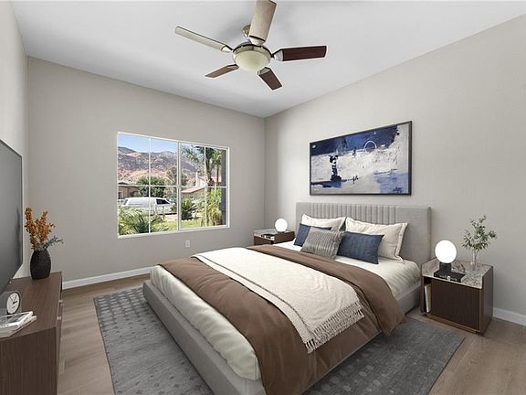 This ranch style home sits on a Huge lot with mountain and hills views and will WOW you from the moment you set eyes on it . With ample driveway parking, 3 car tandem garage, Homes **NEW Interior Paint** NEW Laminate Flooring ** NEW Baseboard** NEW Quartz Countertops** NEW Stainless-steel appliances** and **NEW kitchen sign**.. Home feature , 5 bedrooms 3 1/2 baths with one Jack and Jill bathroom, Master Bedroom boasts a large bathroom with dual sinks, dressing table, walk-in shower, Jacuzzi tub, and walk-in closet. The living areas are spacious, with a formal living/dining area to greet you upon entry, then opening to the huge kitchen which opens to the family room.Has Laundry room with storage cabinet.. The kitchen has been remodeled with New Quartz counters, New Stainless-Steel appliances and an enormous island with bar seating. Perfect for family gatherings and entertaining! From the family room oversized sliding glass doors allow an abundance of light to filter in and give access to the wide back patio... **SOLAR PANELS** close to freeway access